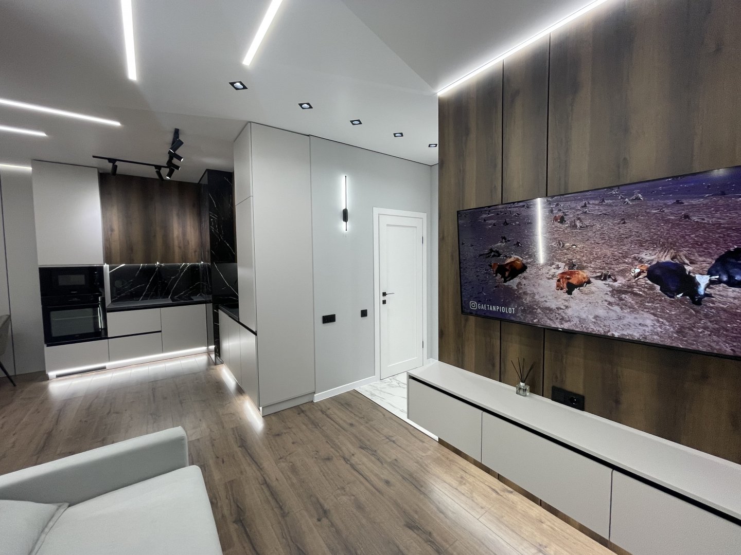 Продається стильна 1 кімнатна квартира в 65-му Перлині. Простора та затишна квартира загальною площею 44 м², продумана до дрібниць. Зручне планування: кухня-студія з окремою гостьовою зоною, окрема спальня з вбиральні, балкон. Зроблено новий, сучасний ремонт. Квартира повністю укомплектована всіма необхідними меблями та технікою - заїдь і живи! Ідеальний варіант як для життя, так і для здавання в оренду. Будинок розташований в одному з найбільш затребуваних районів міста - якісне будівництво, доглянута територія, відеоспостереження, консьєрж, безпечне та комфортне середовище. Телефонуйте!